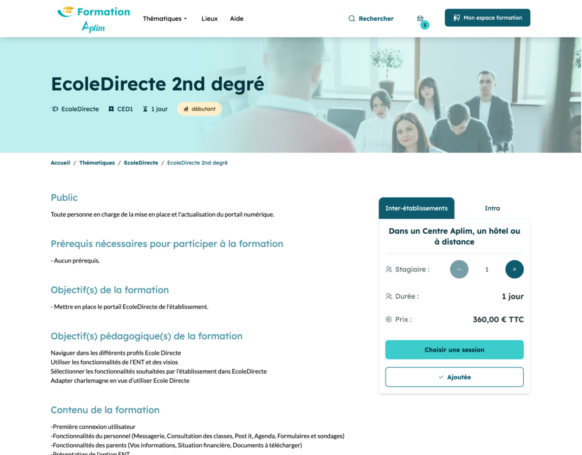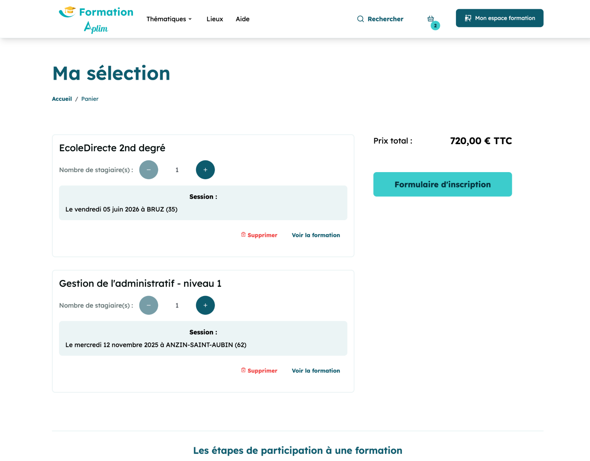 L’idée ? S’inspirer des meilleures pratiques des sites e-commerce pour créer une expérience intuitive, où chaque étape – de la découverte d’une formation à l’inscription – devient fluide et naturelle.