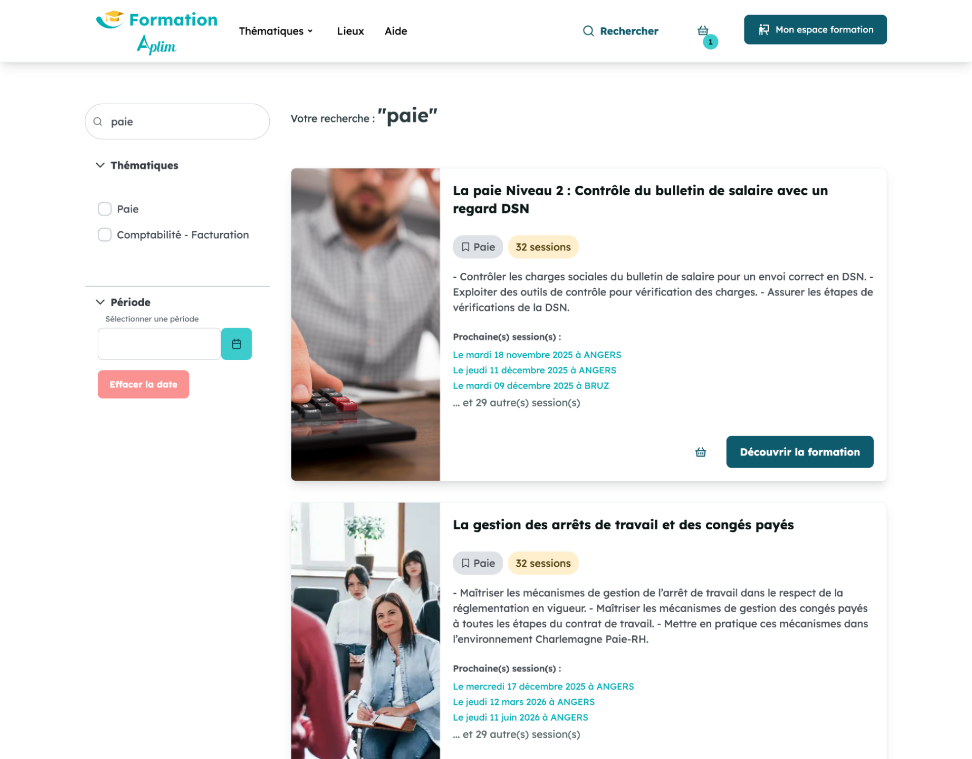 Lors de mon expérience chez Aplim, j’ai eu l’opportunité de mener la refonte complète du site de formation. À l’époque, les utilisateurs peinaient à s’inscrire aux formations, et le site souffrait d’un manque de visibilité sur les moteurs de recherche. L’enjeu était double : simplifier le parcours utilisateur pour faciliter les inscriptions, tout en boostant le référencement naturel pour attirer plus de visiteurs.